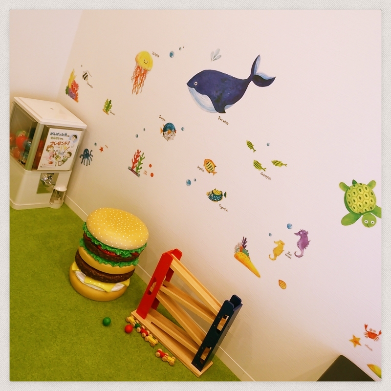 受付横、キッズスペース正面の壁にまた壁紙シールが増えました!